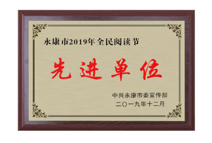 我司榮獲永康市全民閱讀節(jié)“先進(jìn)單位”榮譽(yù)稱號(hào)